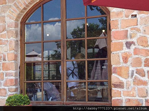 藍天白雲倒映在窗戶上,今天天氣真是大好,把我曬的快成人乾了